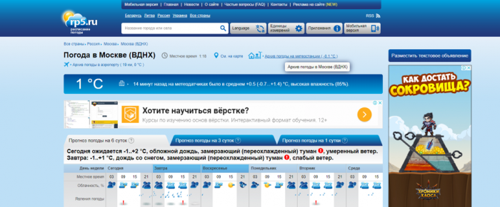 Интерес rp5.ru менее дружелюбен по сравнению с сайтом Gismeteo, но он предоставляет намного больше информации, среди которой можно найти не только температуру, влажность, но и: