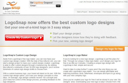 - Logo Snap. Данный сайт требует регистрацию. После нажатия на «Create a logo» работает по стандартному принципу:
